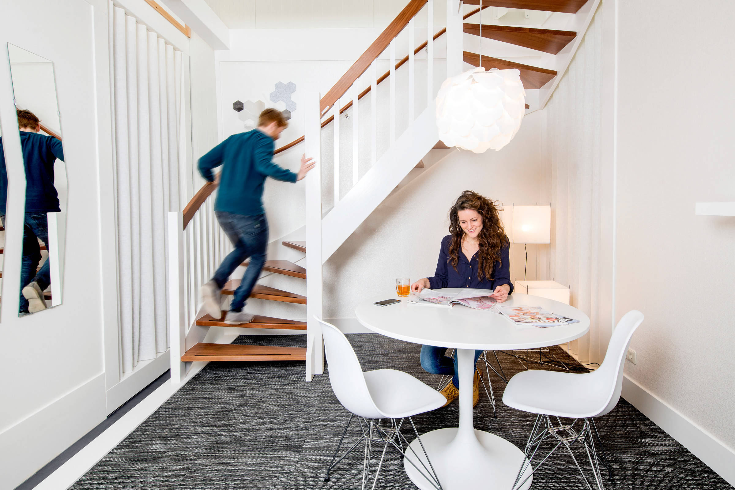 Bij het plaatsen van een trap bent u altijd afhankelijk van de ruimte die de woning daarvoor biedt en de uitgangspunten uit het bouwbesluit. De afmetingen van het trapgat spelen daarbij de belangrijkste rol. Binnen die marges kunnen we spelen met de vorm van de trap, mits het de functie niet in de weg staat: een zo efficiënt en comfortabel mogelijke verbinding maken tussen twee verdiepingen.